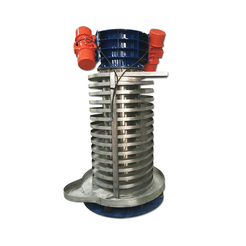 DZC垂直输送机采用振动电机作振动源,利用两振动电机的合成振幅,将物料沿螺旋输送槽向上输送。DZC垂直输送机主要用于提升颗粒状、粉状、块状物料。本输送机结构简单,维修容易,物料定量送出,输送量连续可调,可作为各行业中,小颗粒物料的垂直输送之用.除具有从下向上提升物料外,还可以完成对物料的干燥、冷却作用。分开槽式、封闭式两种结构,并可根据不同工艺的要求,设计物料颗粒分级作用的筛选提升机及设计易燃易爆物料的提升机。