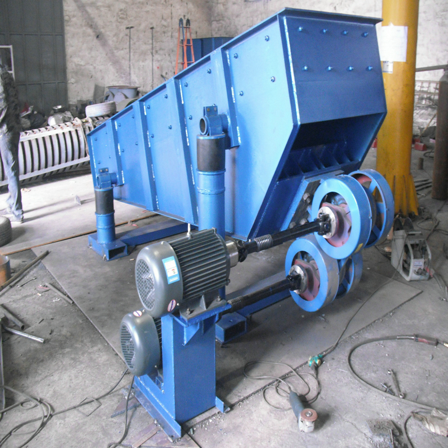 振动给料机采用双偏心轴激振器的结构特点,保证设备能承受大块物料下落的冲击,给料能力大。在生产流程中可以把块状、颗粒状物料从贮料仓中均匀、定时、连续地给到受料装置中去,从而防止受料装置因进料不均而产生死机的现象,延长了设备使用寿命。给料机可分为钢板结构和篦条结构,钢板结构的给料机多用于砂石料生产线,将物料全部均匀地送入破碎设备;篦条结构的给料机可对物料进行粗筛分,使系统在配制上更经济合理,在破碎筛分中已作为必不可少的设备。